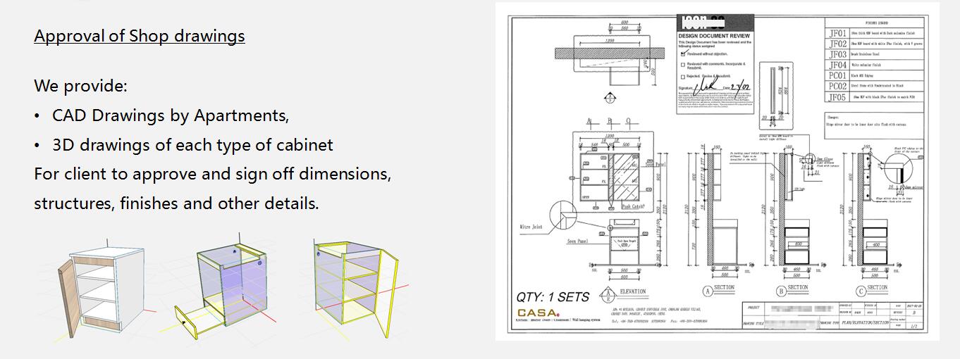 We attach great importance to drawings, and our shop drawings are based on our understanding of the customer's design drawings. They are a feasible production plan that ensures the functionality and appearance are consistent with the customer's drawings, and also provide better optimization solutions for the customer's design. Experienced and aesthetically pleasing designers are the core of their work, and meticulous work is the foundation of their work. Many times, our designers will raise questions and provide solutions for customers' designs, which is a very important part of communication with customers. We hope to benefit our customers with our extensive knowledge.
